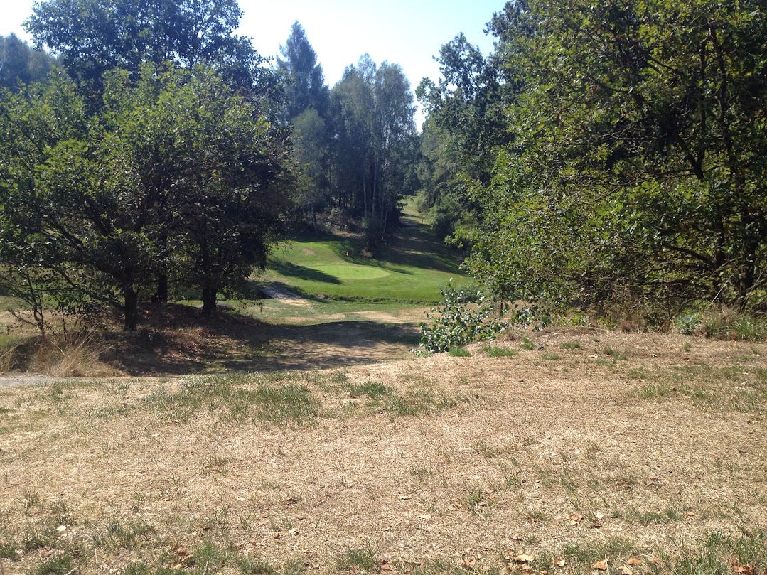 Hole 15 - ein sehr offenes Par 4 mit zuerst einer ebenen Fläche und anschließenden leichten Steigung. Rechts befindet sich der Wald, wo es hinab geht - deshalb eher links halten. Der Wald verzeiht aufgrund seines starken Abfallens nur wenig ;)